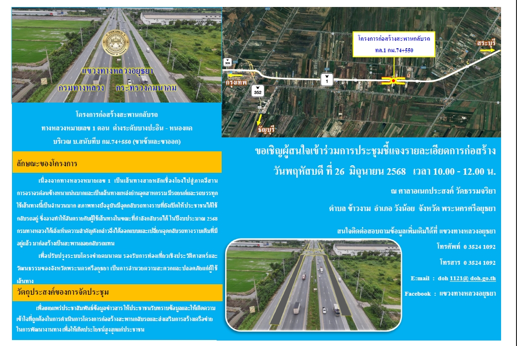 2 17/02/2569 โครงการก่อสร้างทางแยกต่างระดับจุดตัดทางหลวงหมายเลข 347 ตัดทางหลวงหมายเลข 3263 (แยกวรเชษฐ์) จังหวัดพระนครศรีอยุธยา