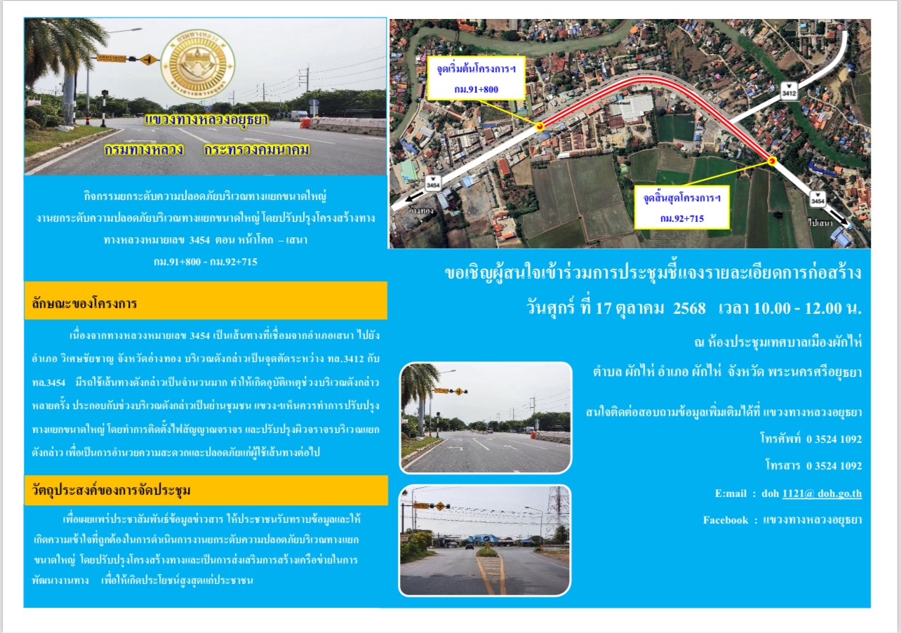 4 14/10/2568 กิจกรรมยกระดับความปลอดภัยบริเวณทางแยกขนาดใหญ่โดยปรับปรุงโครงสร้างทาง ทางหลวงหมายเลข 3454 ตอน หน้าโคก - เสนา