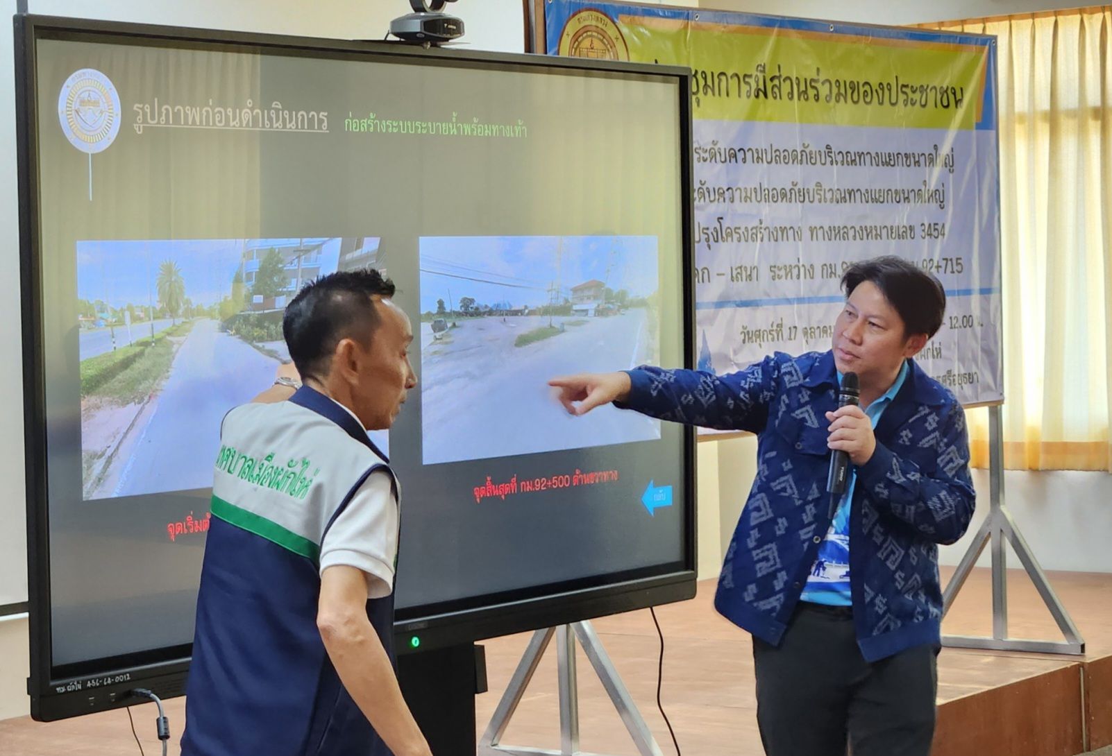 โดยปรับปรุงโครงสร้างทางทางหลวงหมายเลข 3454 ตอน หน้าโคก - เสนา ระหว่าง กม.91+800 - กม.92+715
