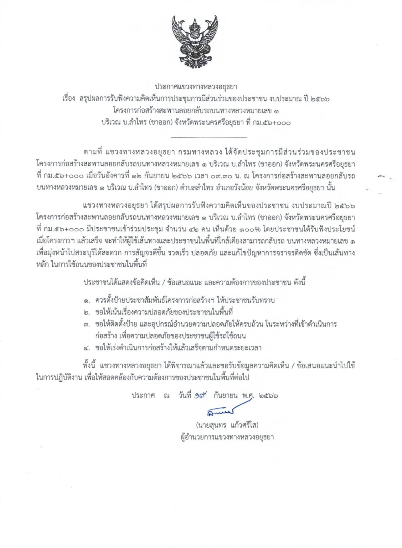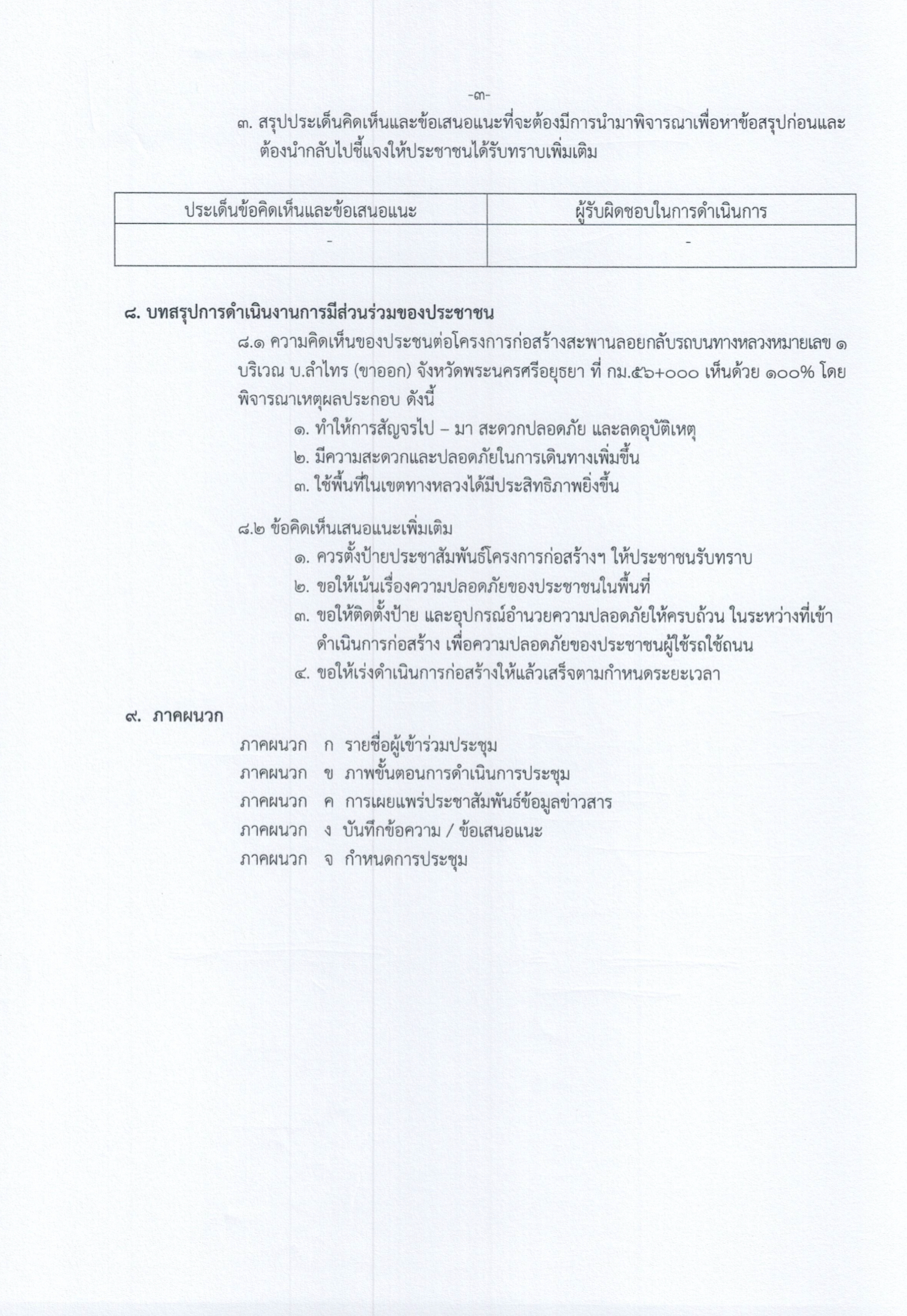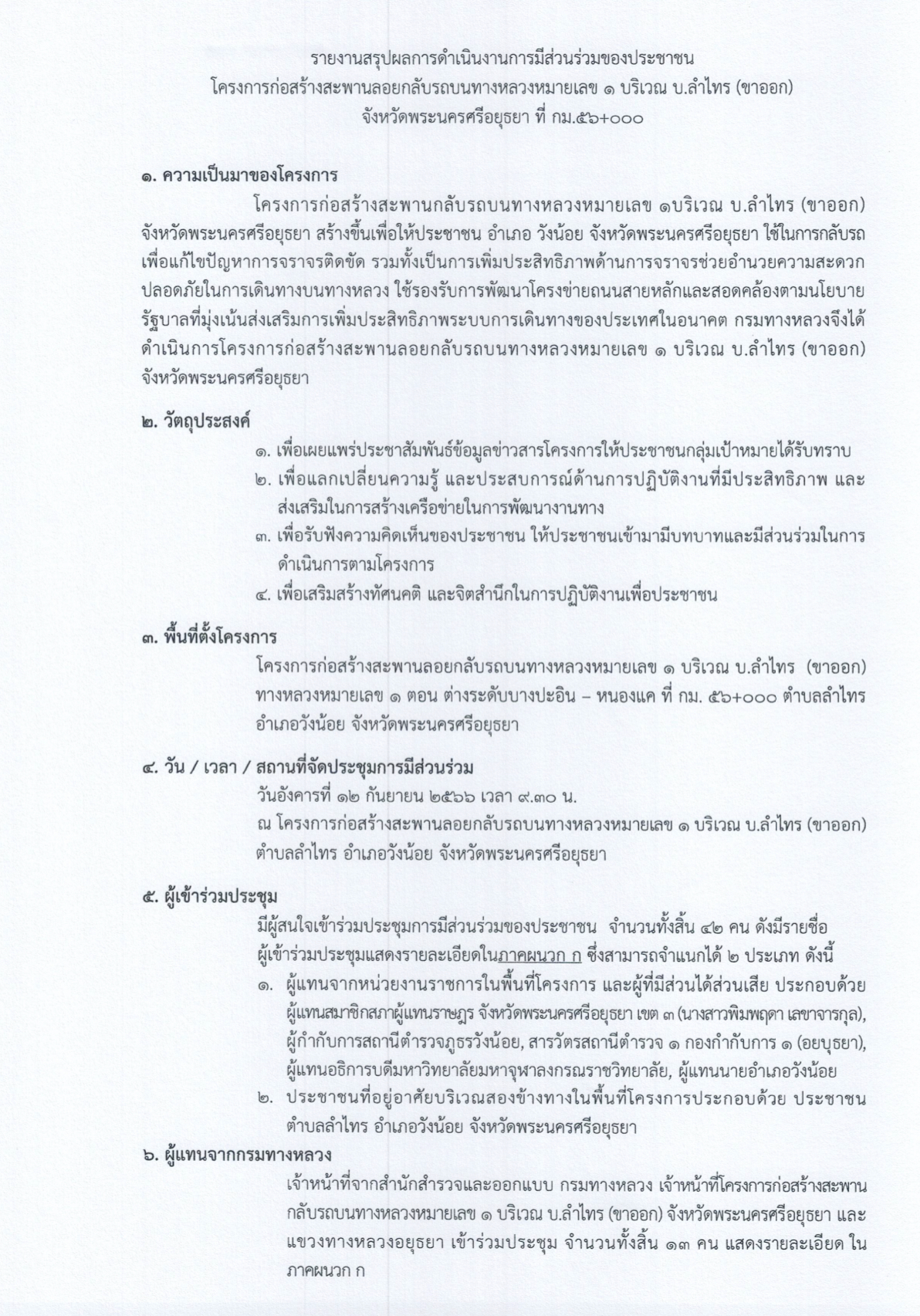 แขวงทางหลวงอยุธยา จึงขอรายงานสรุปผลการดำเนินงานการมีส่วนร่วมของประชาชน