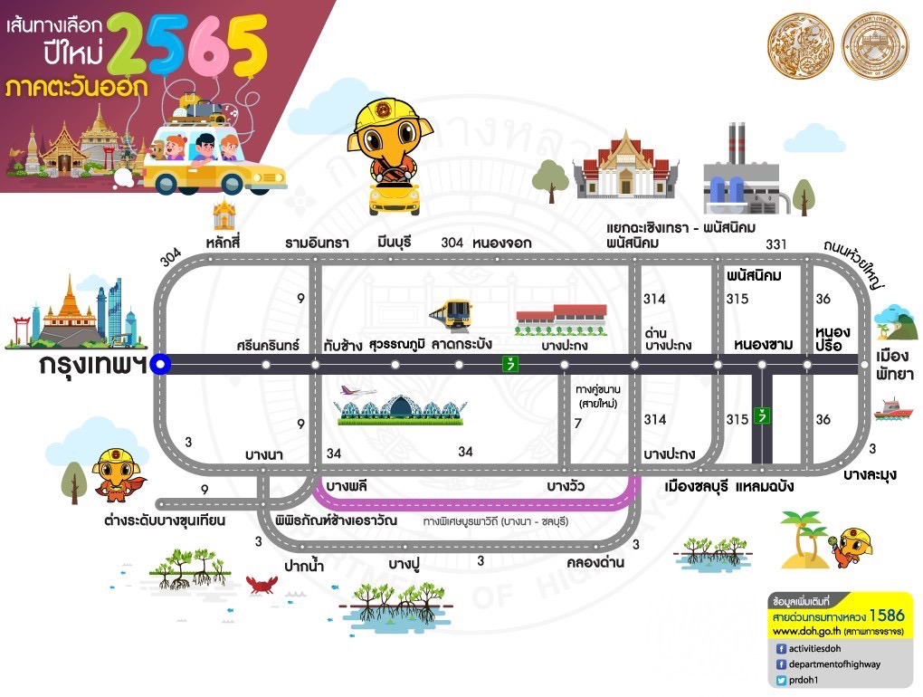 หากประชาชนต้องการสอบถามข้อมูลการเดินทางเพิ่มเติมหรือแจ้งเหตุด่วนเหตุร้ายระหว่างเดินทาง สามารถติดต่อได้ที่สายด่วนกรมทางหลวง 1586 (โทรฟรีทุกเครือข่ายตลอด 24 ชั่วโมง) สายด่วนมอเตอร์เวย์ 1586 กด 7 และตำรวจทางหลวง 1193