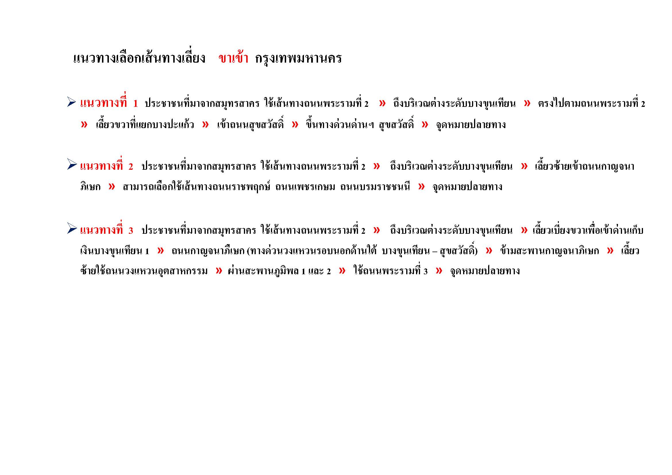 แนวทางเลือกเส้นทางเลี่ยง “ขาเข้า กรุงเทพมหานคร”