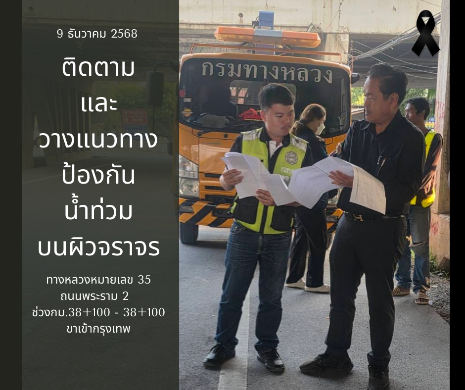 เมื่อวันที่ 7 (วันอาทิตย์ที่ผ่านมา) นั้น ในวันอังคารที่ 9 เดือน ธันวาคม พ.ศ.2568 นายศุภโชค มีอำพล ผู้อำนวยการสำนักงานทางหลวงที่ 13 (กรุงเทพ) ร่วมกับ เจ้าหน้าที่แขวงทางหลวงสมุทรสาคร ลงพื้นที่บริเวณจุดกลับรถใต้สะพาน (บ้านแพ้ว) ทางหลวงหมายเลข 35 (พระราม2) ช่วงกม.38+100 - 39+100 ขาเข้ากรุงเทพ โดยติดตามสถานการณ์น้ำท่วมผิวทางจราจรพร้อมทั้งร่วมกันวางแนวทางในการดำเนินการ เตรียมความพร้อมรับมือหากเกิดสถานการณ์ฉุกเฉิน เพื่อบรรเทาให้ผู้ใช้ทางได้รับผลกระทบน้อยที่สุด