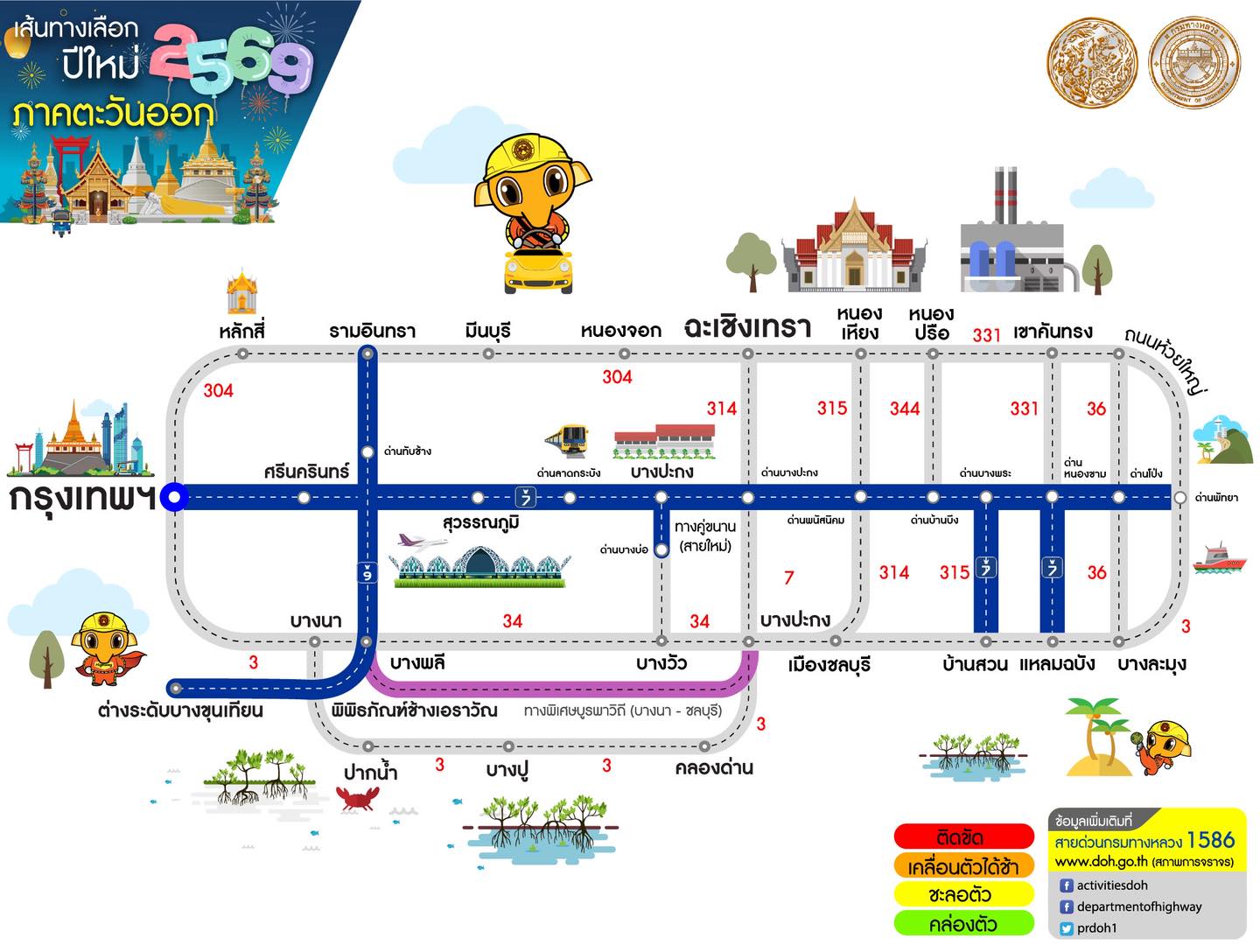 กรมทางหลวง โดยสำนักอำนวยความปลอดภัย ได้แนะนำเส้นทางเลือกให้กับประชาชนในช่วงเทศกาลปีใหม่ระหว่างวันที่ 26 ธันวาคม 2568 – 5 มกราคม 2569 เพื่อเป็นการอำนวยความสะดวกแก่ ผู้เดินทางและหลีกเลี่ยงปัญหาการจราจรติดขัด รวมถึงช่วยให้ประชาชนวางแผนการเดินทางล่วงหน้าได้เป็นอย่างดีบนทางหลวงสายหลักและสายรอง ดังนี้