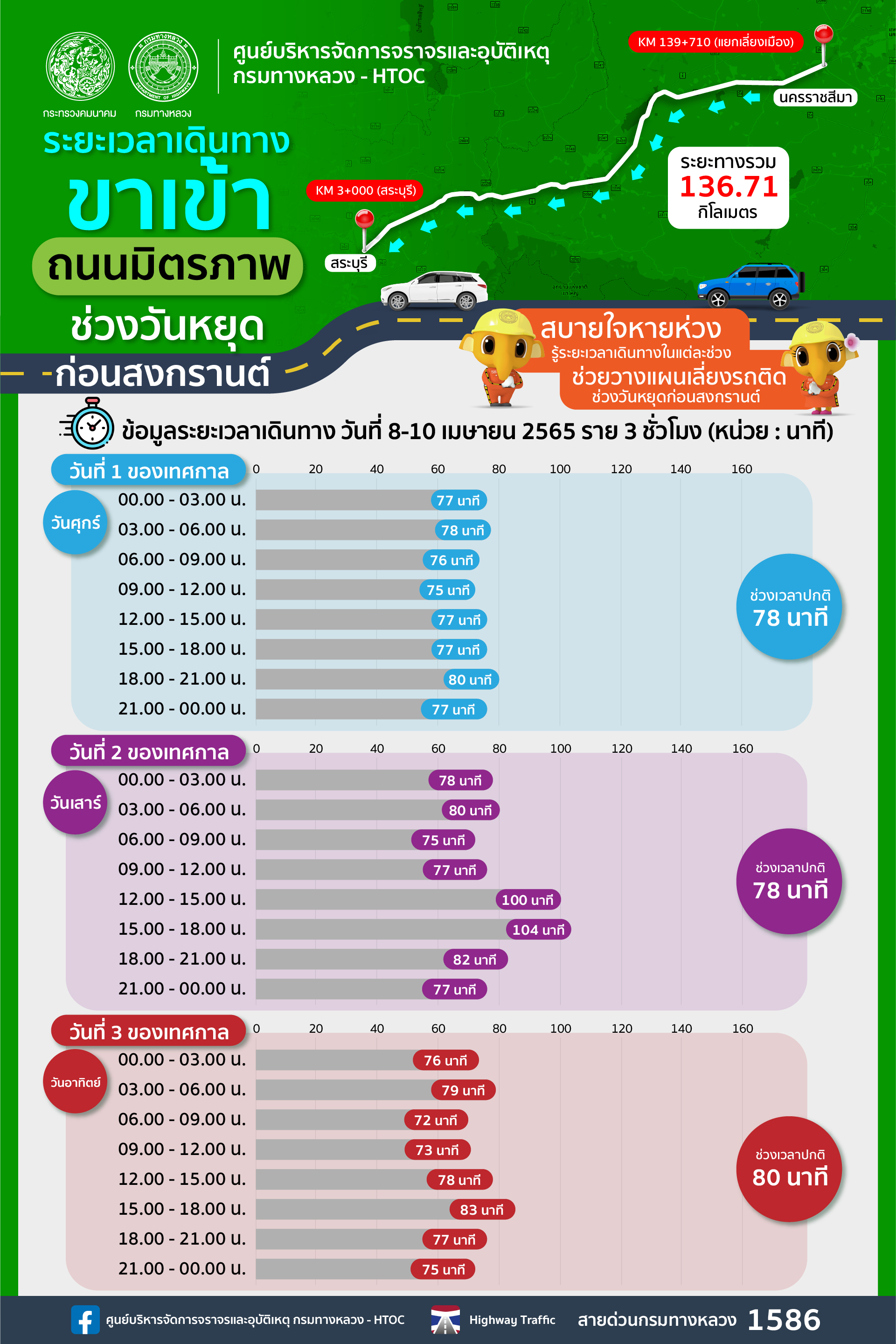 กรมทางหลวงแนะนำเส้นทางเลือกจากกรุงเทพฯ สู่ภูมิภาคต่าง ๆ ช่วงเทศกาลสงกรานต์ 2566 เพื่อให้ผู้ใช้เส้นทางได้รับความสะดวก รวดเร็วในการเดินทาง สอบถามโทร 1586 ฟรีทุกเครือข่ายตลอด 24 ชั่วโมง