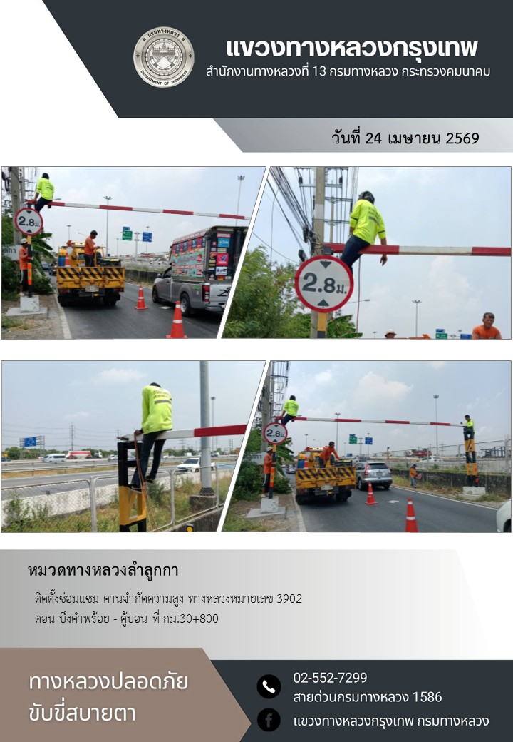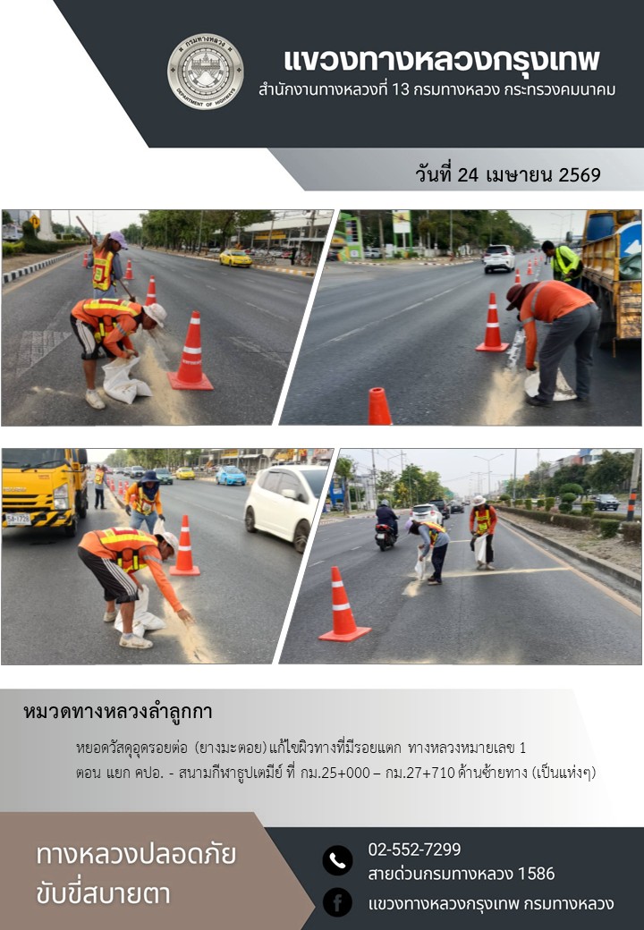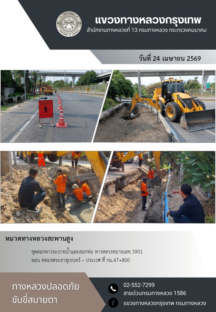 "ทางหลวงปลอดภัย ขับขี่สบายตา แขวงทางหลวงกรุงเทพ" ประจำวันที่ 24 เมษายน 2569