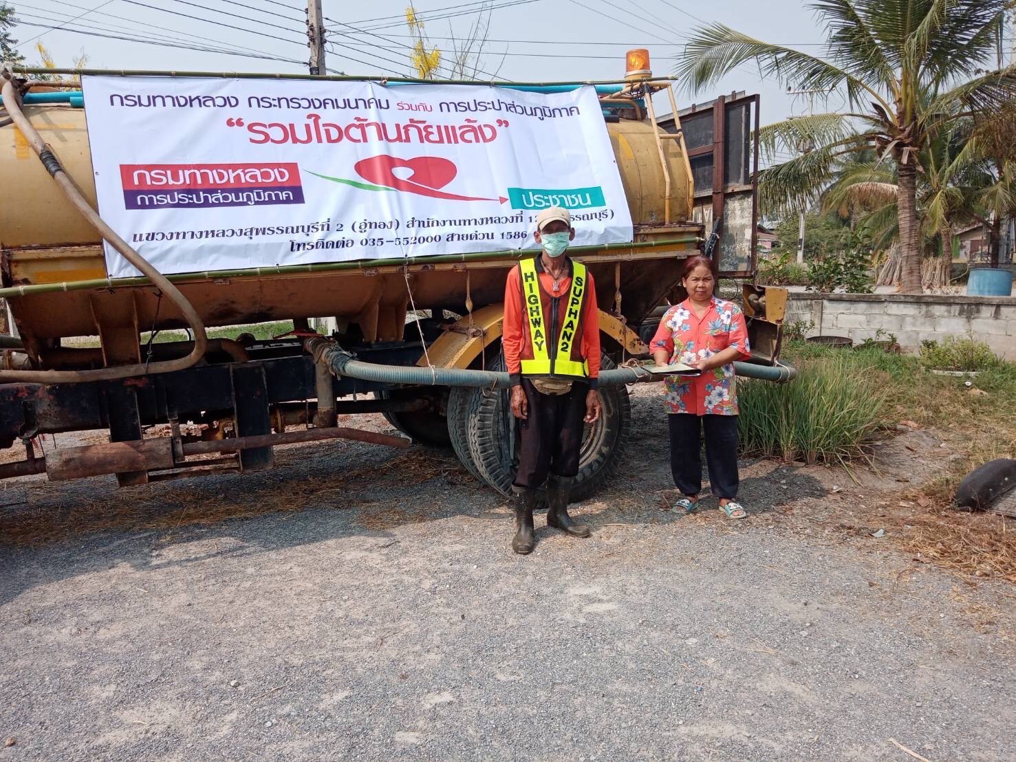 นายสราวุธ ทรงศิวิไล อธิบดีกรมทางหลวง เปิดเผยว่า ด้วยขณะนี้ประเทศไทยได้เข้าสู่ช่วงสถานการณ์ภัยแล้งโดยเฉพาะพื้นที่ภาคเหนือและภาคตะวันออกเฉียงเหนือ ทำให้ประชาชนหลายจังหวัดได้รับความเดือดร้อนขาดแคลนน้ำในการอุปโภคบริโภคในชีวิตประจำวันและเพื่อทำการเกษตร กรมทางหลวงจึงได้ดำเนินโครงการ “กรมทางหลวง – การประปาส่วนภูมิภาค รวมใจต้านภัยแล้ง” ปีที่ 18 โดยการประปาส่วนภูมิภาคได้ให้การสนับสนุนน้ำประปา เพื่อแจกจ่ายน้ำประปาช่วยเหลือผู้ประสบภัยและบรรเทาความเดือดร้อนของประชาชนผ่านหน่วยงานในสังกัดกรมทางหลวงทั่วประเทศ ได้แก่ สำนักงานทางหลวง 18 แห่ง แขวงทางหลวง 104 แห่ง และหมวดทางหลวง 581 แห่ง