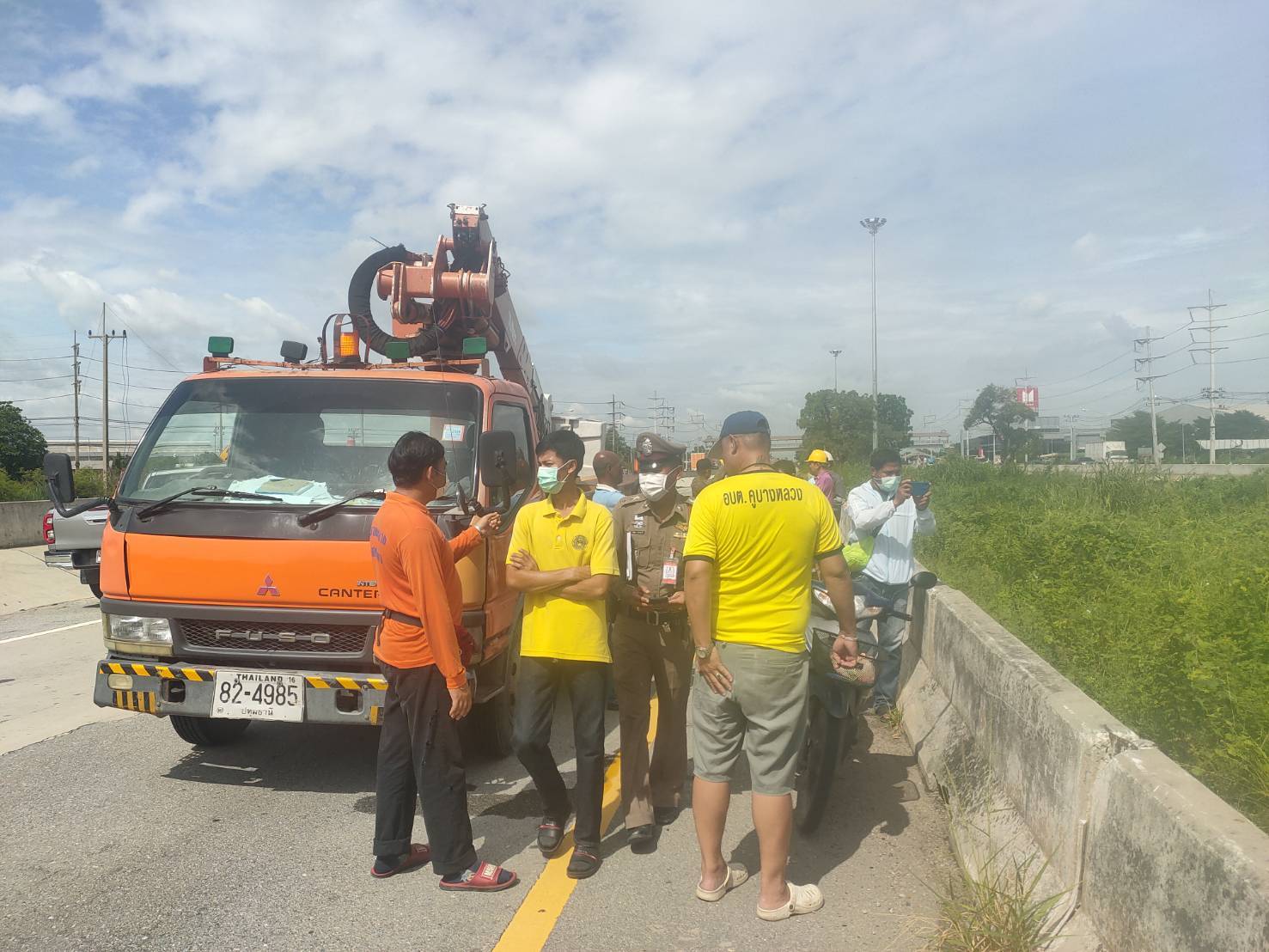 พบศพชายลักตัดสายไฟ ถูกโคมไฟฟ้าแสงสว่าง High Mast ร่วงทับร่าง ทางหลวงหมายเลข 9 คลองบางหลวง - ต่างระดับเชียงรากน้อย ต.คลองควาย อ.สามโคก