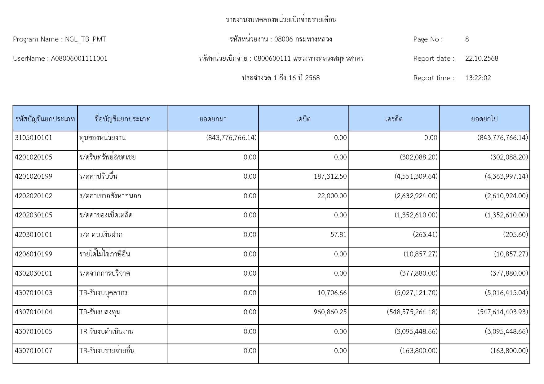 รายงานรายละเอียดรายการบัญชีที่สำคัญประกอบงบทดลองประจำเดือน กันยายน 2568