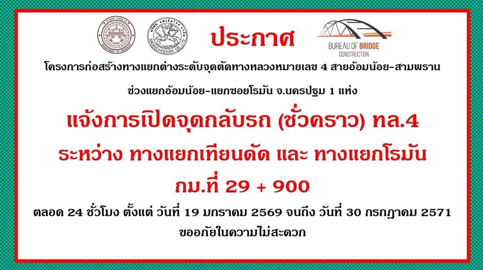 โครงการก่อสร้างทางแยกต่างระดับจุดตัดทางหลวงหมายเลข 4 สายอ้อมน้อย-สามพราน ช่วงแยกอ้อมน้อย-แยกซอยโรมัน จ.นครปฐม