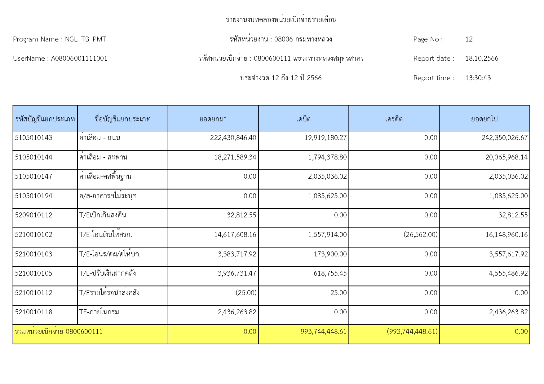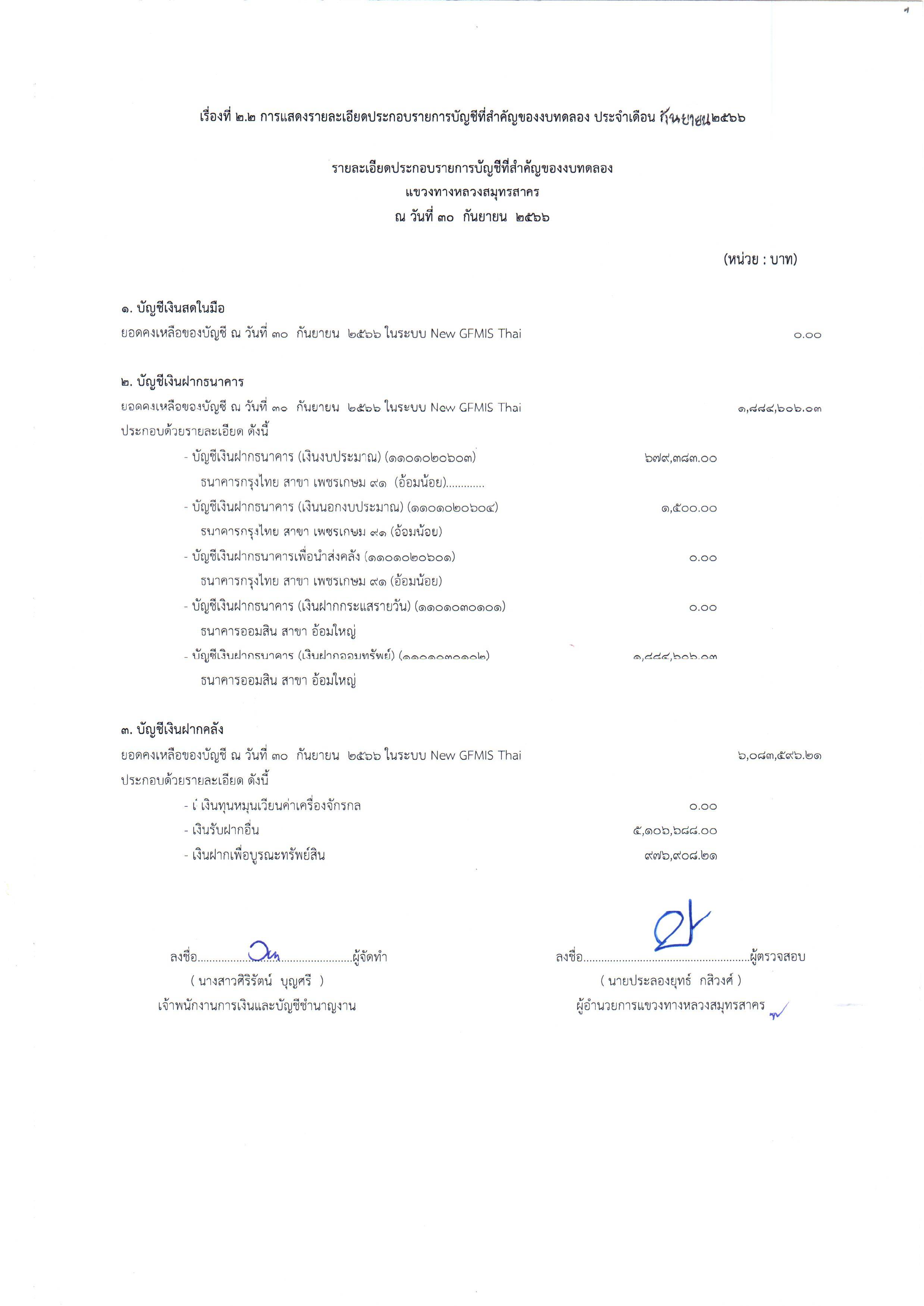 การแสดงรายละเอียดประกอบรายการบัญชีที่สำคัญของงบทดลองประจำเดือนกันยายน 2566 |