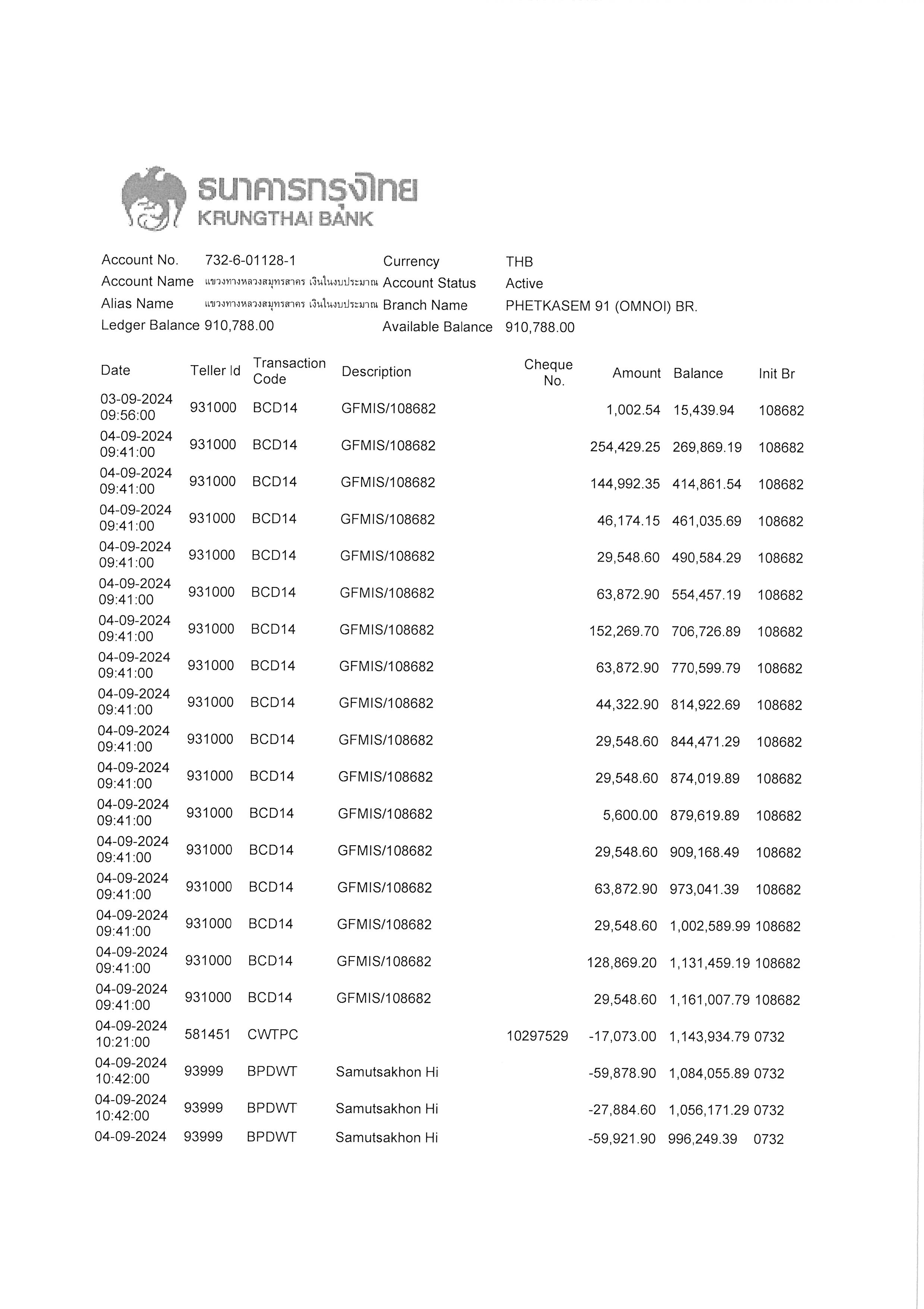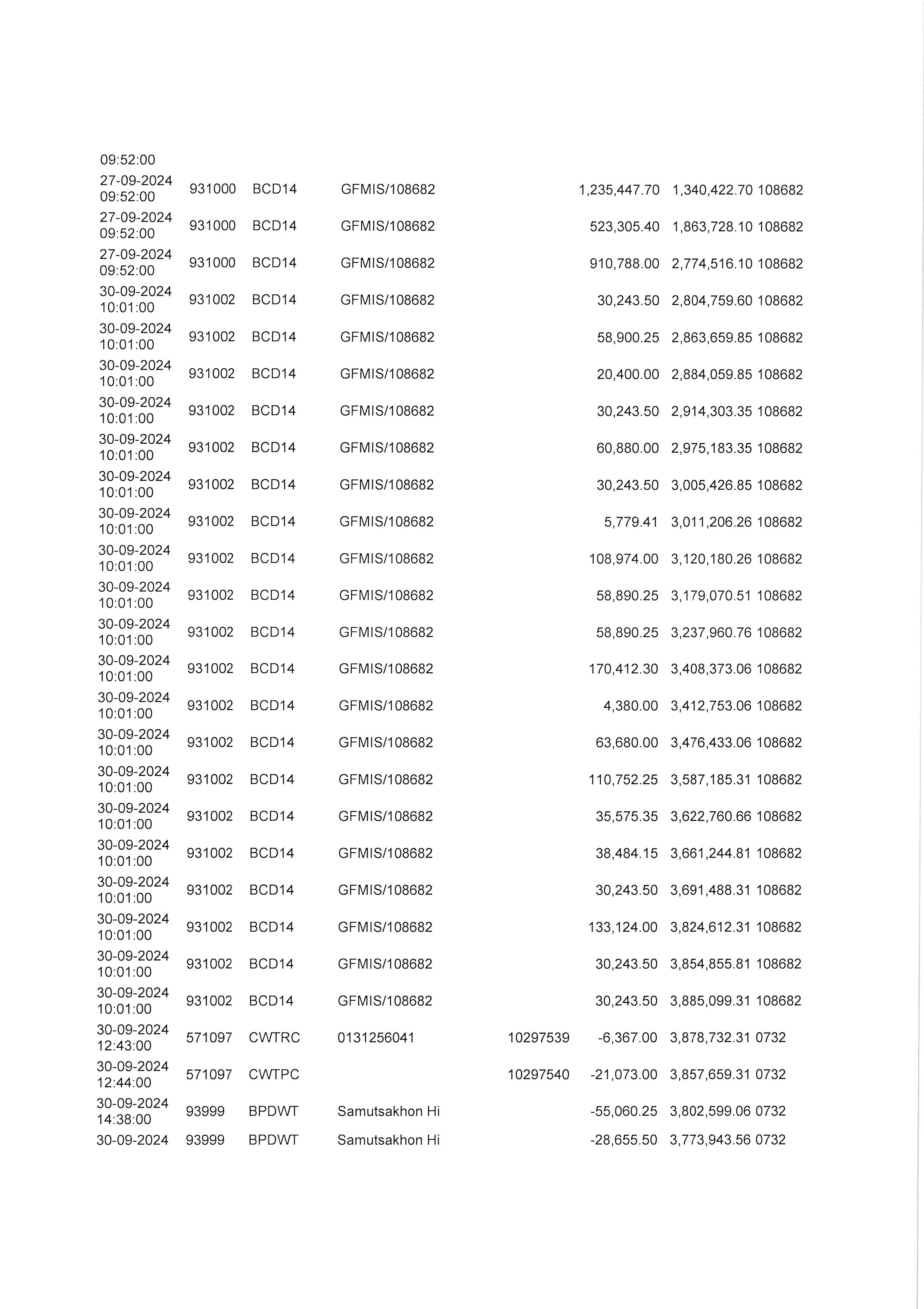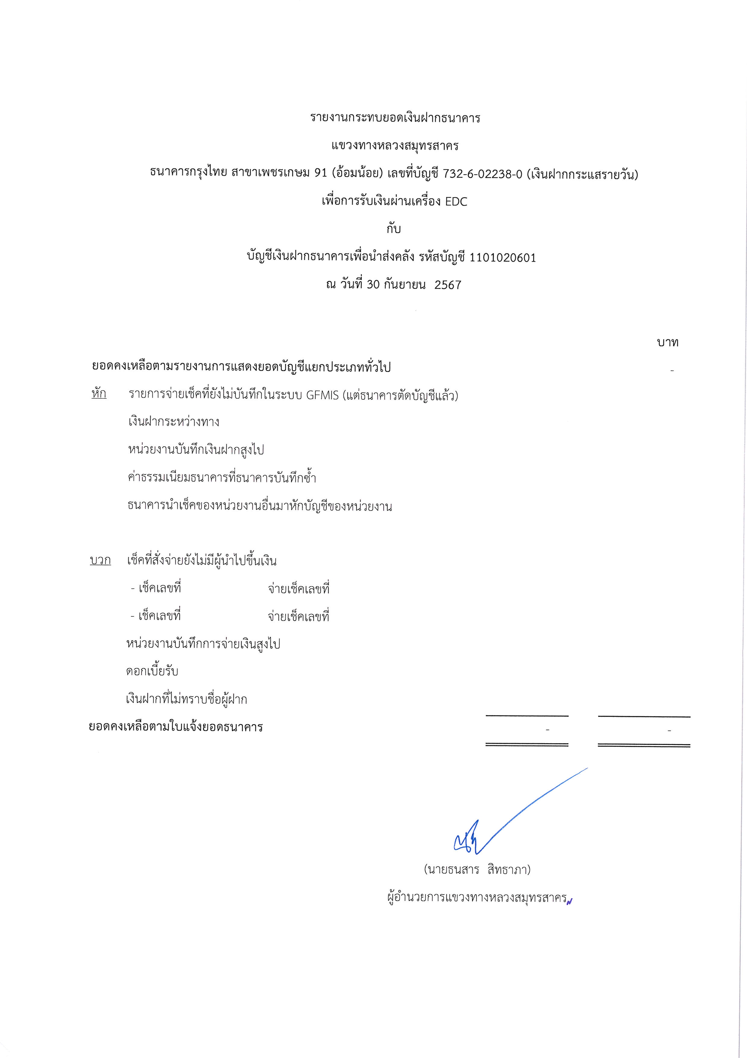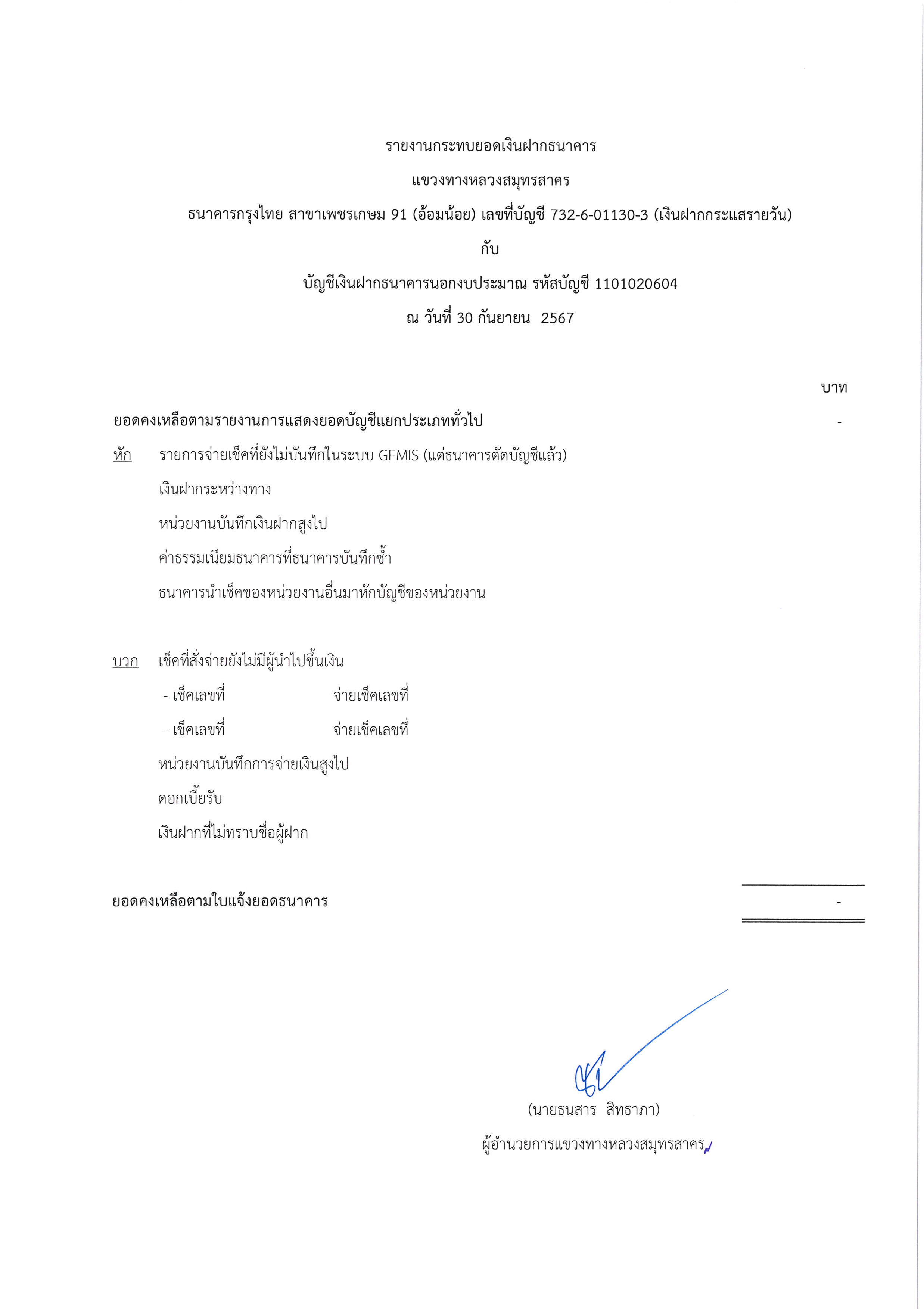 แขวงทางหลวงสมุทรสาครขอส่ง..การแสดงรายละเอียดประกอบรายการบัญชีที่สำคัญของงบทดลองประจำเดือนกันยายน 2567